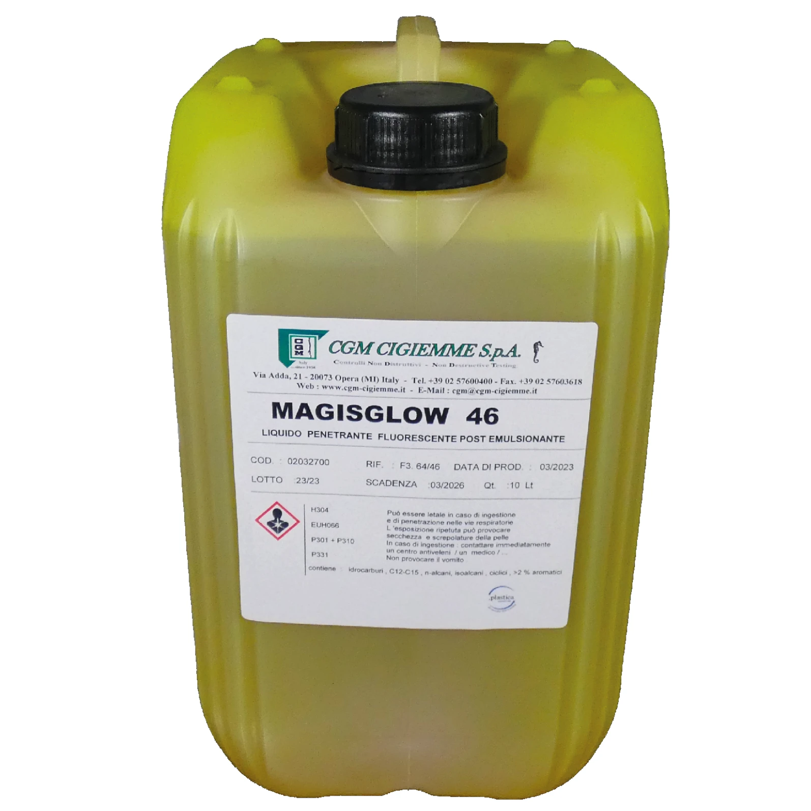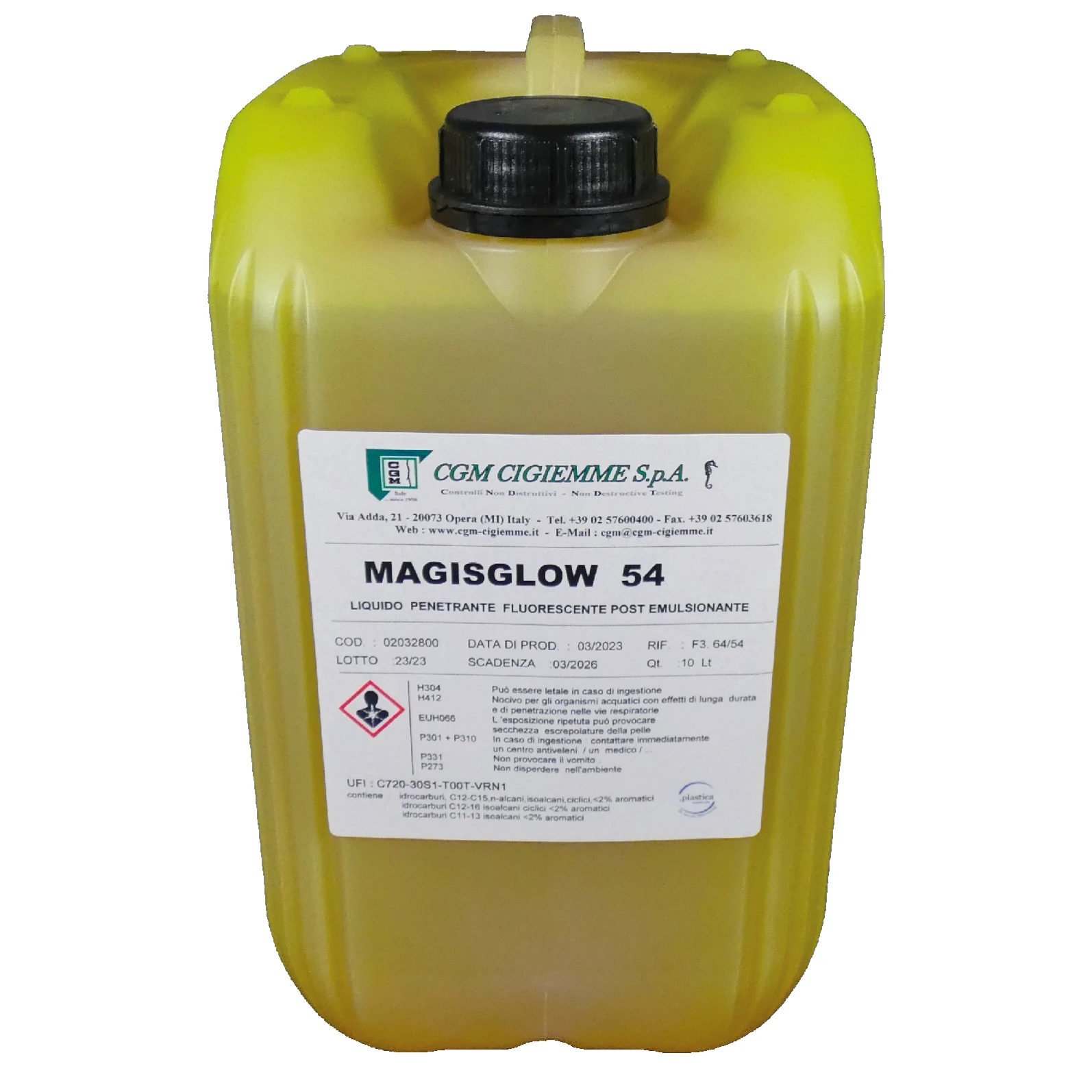 Il Magisglow 30 è un penetrante fluorescente ad alta sensibilità lavabile in acqua. Può essere utilizzato in un ampio campo di applicazioni, garantendo ottime caratteristiche di penetrazione e ottima affidabilità nell’individuazione di difetti aperti in superficie. Questo liquido penetrante è ideale anche per il controllo di difettologie in saldatura come fori/porosità passanti, in quanto l’elevato potere di penetrazione riduce i tempi d’esame e consente la rilevazione di difetti di piccole dimensioni.