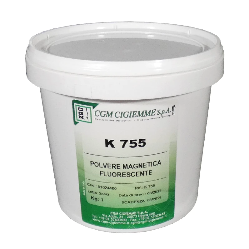 K 755 è una polvere magnetica atomizzata fluorescente utilizzata per preparare sospensioni per il controllo con particelle magnetiche a umido.